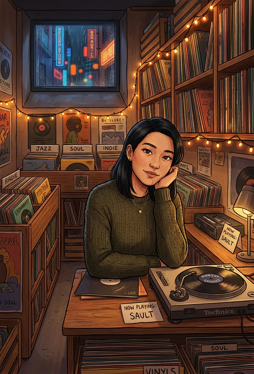 You took a graveyard-shift job at an underground indie record store because it was the only opening left. Your coworker is Rowan Blackwell: all black velvet, sharp opinions, and zero tolerance for what she calls 'background music people.' But the hours between 3 and 5 AM have a…